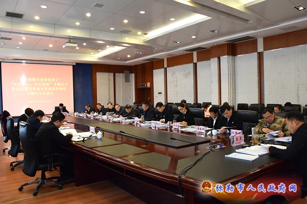 12月6日,弥勒市委常委班子召开“不忘初心、牢记使命”专题民主生活会暨汲取秦光荣案深刻教训专题民主生活会。会议深入学习贯彻习近平新时代中国特色社会主义思想,聚焦“不忘初心、牢记使命”主题和深刻汲取秦光荣案教训主题,进行班子及个人对照检查,开展批评和自我批评,盘点收获、检视问题、深刻剖析,以严实的作风做好政治体检和深刻的党性分析,推动市委常委班子和班子成员自身建设,以良好的政治生态推进弥勒高质量跨越式发展。