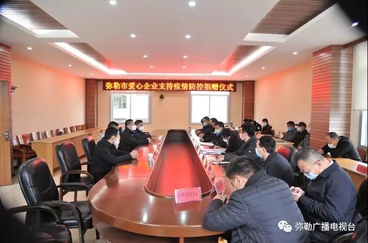 2月9日,弥勒市举行爱心企业支持疫情防控工作捐赠仪式,云南弥勒市磷电化工有限责任公司、红河华圳房地产开发经营有限公司各捐款20万元支持弥勒市疫情防控工作。市委常委、常务副市长马金荣出席捐赠仪式并致辞,副市长田红梅、熊伟出席仪式,田红梅主持仪式。