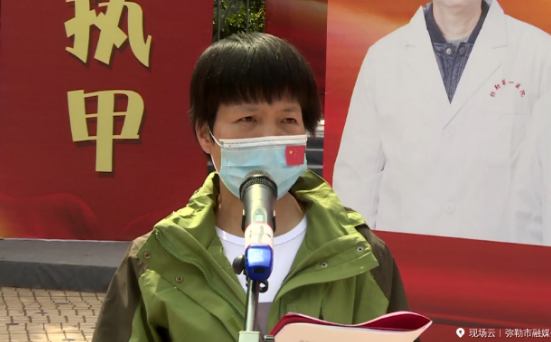 梁凌云说,自疫情发生以来,全国上下团结一致、齐心协力,在党中央的坚强领导下,在习近平总书记的亲自指挥、亲自部署下,我们距打赢这场人民战争、总体战、阻击战的目标越来越近。在疫情蔓延的危难之时,全国上下特别是各级党员干部把思想和行动统一到以习近平同志为核心的党中央部署要求上来,勇于拼搏、积极奉献,特别是像你们一样的白衣勇士,坚决响应习近平总书记和党中央号召,惜别亲人、逆行出征,义无反顾奔赴抗疫主战场,投身到抗击疫情斗争当中,圆满、出色地完成了各项医疗救治任务,咸宁市嘉鱼县成为湖北省第二个实现“清零”的县市。这段时间,你们的家人亲朋、市委市政府以及全市广大人民群众,无不关注着各种关于你们的消息和报道。我们看到了你们勇战病魔坚定自信的眼神,看到了你们和湖北嘉鱼人民并肩战斗的身影,同时间赛跑、与病魔较量,以精湛的医术、高尚的医德,挽救了一个个鲜活的生命,谱写了一曲曲壮丽的凯歌,为打赢湖北保卫战、武汉保卫战、咸宁保卫战展现了弥勒担当、作出了弥勒贡献。