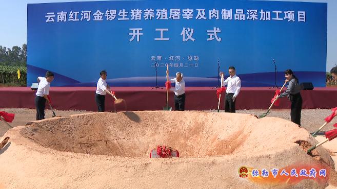 4月20日,云南红河金锣生猪养殖屠宰及肉制品深加工项目开工仪式在弥勒绿色食品加工园举行。州委书记姚国华出席开工仪式并宣布项目开工。州委副书记、州长罗萍讲话,省农业农村厅党组副书记、副厅长李国林,州委常委、州委秘书长吴世雄,副州长周踊,弥勒市委书记梁凌云,市委副书记、代理市长李健,金锣集团党委书记郑培清出席开工仪式。
