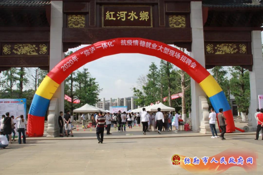 5月13日,由弥勒市人力资源和社会保障局和泸西县人力资源和社会保障局联合主办的“弥泸一体化”抗疫情稳就业现场招聘会在弥勒市红河水乡举行。弥勒市委常委、市政府常务副市长马金荣出席开幕式。