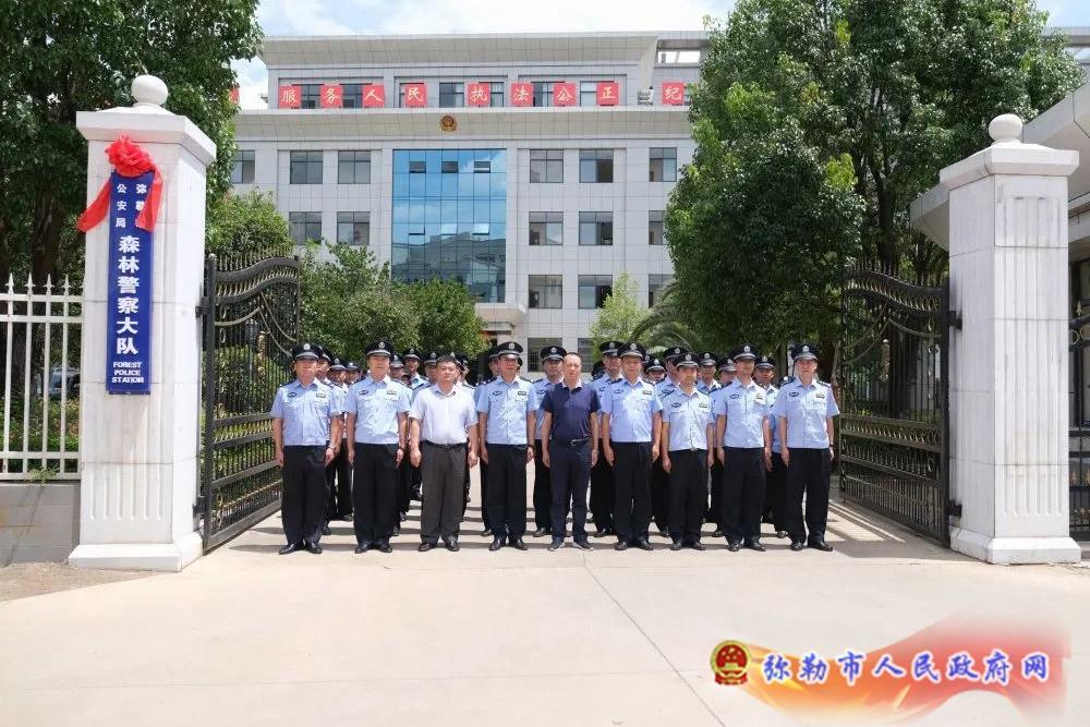 6月29日下午,弥勒市公安局举行森林警察大队揭牌仪式。市委常委、市委政法委书记张俊忠,市人民政府副市长、市公安局党委书记、局长熊伟,市林草局局长孔令光共同为弥勒市公安局森林警察大队揭牌。市公安局党委副书记、政委谢豪,市公安局党委委员、副局长杨缤,市公安局党委委员、政治处主任陈光权,以及森林警察大队全体民警、职工参加了揭牌仪式。