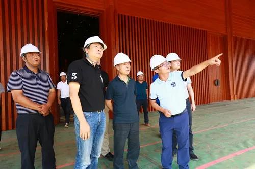姚国华(右二)在国际木屋会议中心了解项目施工建设情况