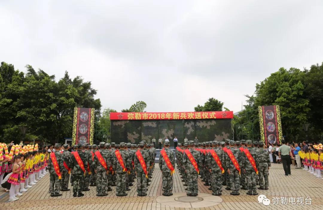 9月11日,弥勒市在湖泉广场举行2018年新兵入伍欢送仪式,欢送108名新兵踏上征程,报效祖国。