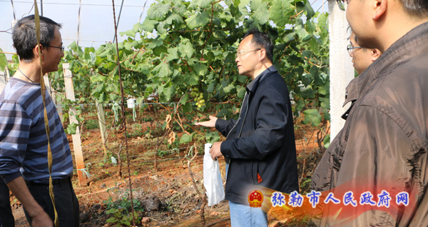 马勇深入五山乡石头寨实地察看强基惠农“股份合作经济”柑橘种植基地、弥勒彝乡科技有限公司柑橘、葡萄种植基地,听取企业负责人情况介绍和五山乡主要领导关于全乡产业发展工作汇报。马勇对五山乡通过引产业落地、引资本进村、引水源上山、引土地入股、引技术下乡“五引行动”,在石头寨村培育出了“企业+社员+村党总支(村委会)+合作社”的新型农业经营主体模式,在石头寨建成1000亩柑橘基地,示范带动全乡发展柑橘7000亩,目前挂果3000亩,年产值达6000余万元给予充分肯定。