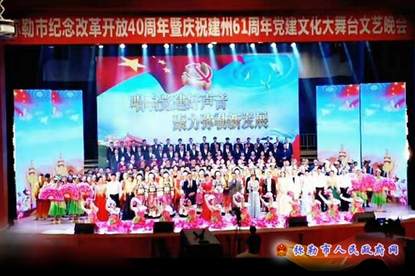 11月15日晚,弥勒市举行庆祝改革开放40周年暨庆祝建州61周年党建文化大舞台文艺晚会。市委书记包旭,市委副书记、市长梁凌云,市委副书记李健,市人大常委会主任马勇,州委非公经济和社会组织党工委书记卢志旺等出席并观看晚会。