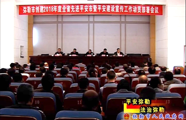 会议通报弥勒市近年来平安建设情况,群众安全感满意度排名情况,并就创建2018年度全省先进平安市暨平安建设宣传工作进行安排部署。
