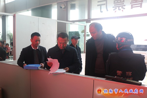 12月29日,副市长胡伟到弥勒市锁龙寺客运中心站检查“两节”“两会”前交通运输安全生产工作。