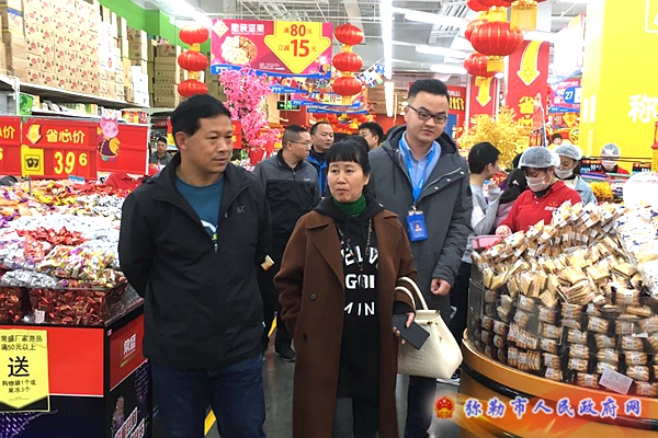 1月21日,市委常委、市委宣传部部长、常务副市长马金荣带队开展春节前市场食品药品安全检查。市市场监督管理局局长陈树芳等陪同检查。