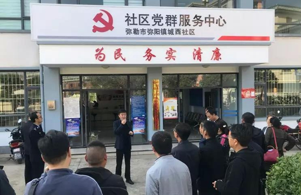 会后,城市基层党建参与单位到弥阳镇城西社区参观交流智慧党建推进工作。