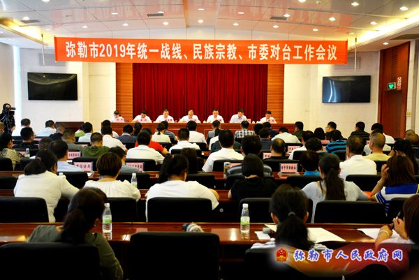 4月23日下午,弥勒市召开2019年全市统一战线、民族宗教、市委对台工作会议, 总结回顾2018年全市统一战线、民族宗教、市委对台工作,全面安排部署2019年重点工作任务。市委常委、市委统战部部长刘涛出席会议并作讲话,市人民政府副市长、市公安局局长熊伟主持会议。