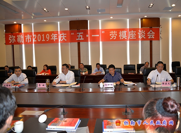 4月29日,弥勒市总工会召开2019年庆“五·一”劳模座谈会。市委副书记李健,市委常委、常务副市长马金荣出席座谈会,市政协副主席、市总工会主席张家文主持座谈会。