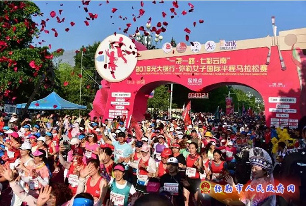 5月19日上午8:00,云南省“一带一路·七彩云南”系列赛的首场马拉松赛——“一带一路·七彩云南”2019光大银行·弥勒女子国际半程马拉松赛在弥勒市鸣枪开赛。共有来自25个国家和地区的外籍运动员70余名,全国40余个跑团参与。