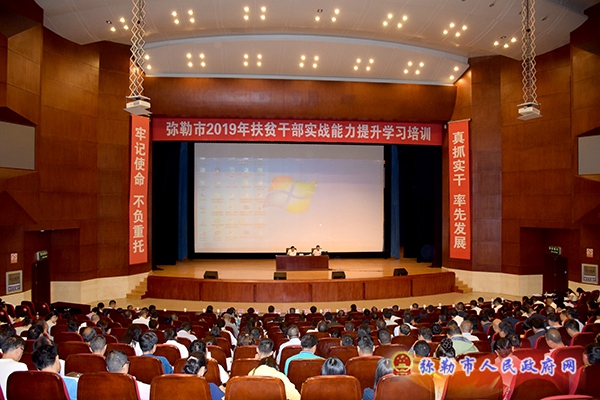 5月23日,弥勒市举行2019年扶贫干部实战能力提升学习培训。会议旨在深入学习贯彻习近平总书记扶贫开发战略思想,全面提升各级扶贫干部在脱贫攻坚中的学习能力、实战能力、执行能力,为打赢打好全市脱贫攻坚大会战提供坚强保障。市委副书记李健作动员讲话。市政协主席张茹权,市委常委、市委宣传部部长毕晓红,市委常委、市人武部部长孙国辉,市人大常委会副主任郭连超、伏燕、李晓路,市政协副主席张家文、李建荣、王君兰、赵学磊出席会议。