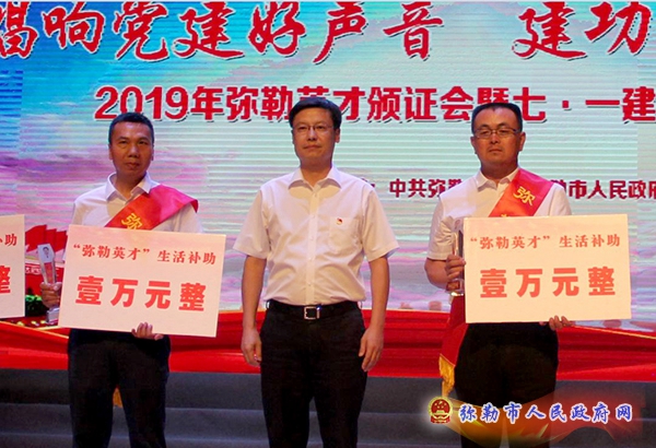 图为市委副书记李健宣读评定“弥勒英才”决定