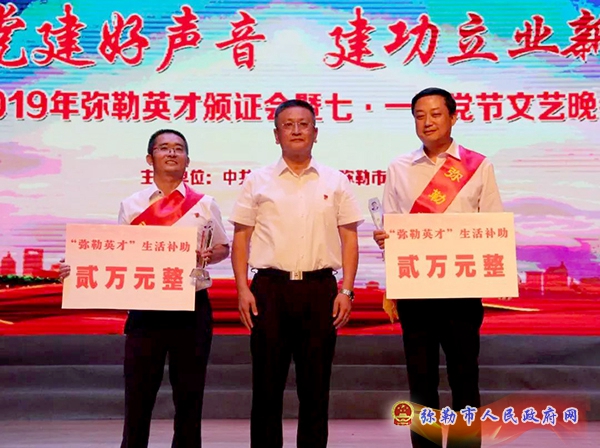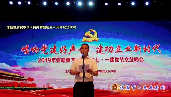 为喜迎中华人民共和国成立70周年,热烈庆祝中国共产党建党98周年,6月27日晚,弥勒市举办 “弥勒英才”颁证会暨党建文化大舞台“七·一”建党节文艺晚会。晚会以“唱响党建好声音 建功立业新时代”为主题,旨在集中展示弥勒党员干部人才精神风貌,凝聚弥勒党员干部人才发展力量。