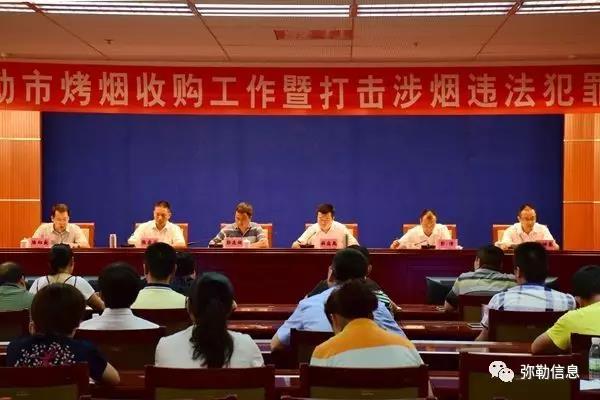 8月22日,弥勒市召开2017年烤烟收购工作暨打击涉烟违法犯罪工作会议。市委副书记杜应昆,市人大常委会副主任郭连超,副市长、市公安局局长彭涛,市政协副主席张家文等出席会议。