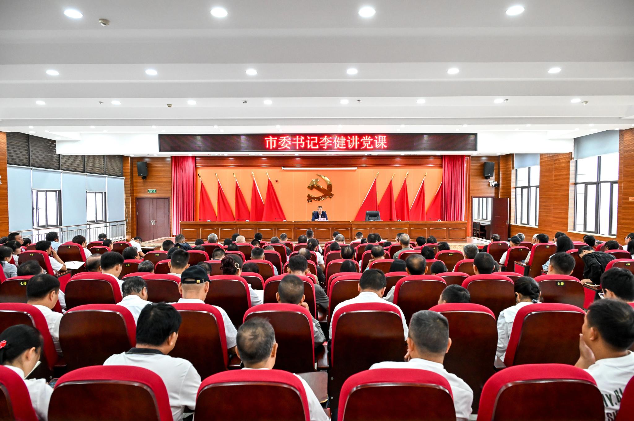 7月1日,市委书记李健到太平街道,为基层党员干部讲授深入贯彻中央八项规定精神学习教育专题党课,推动学习教育持续走深走实。