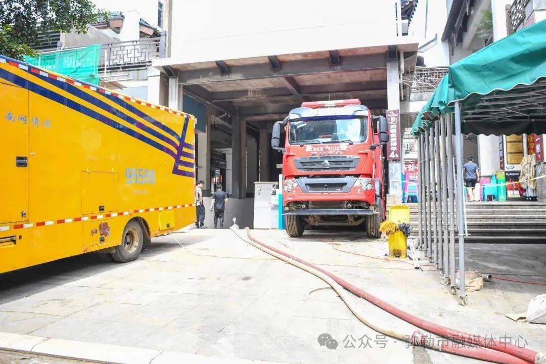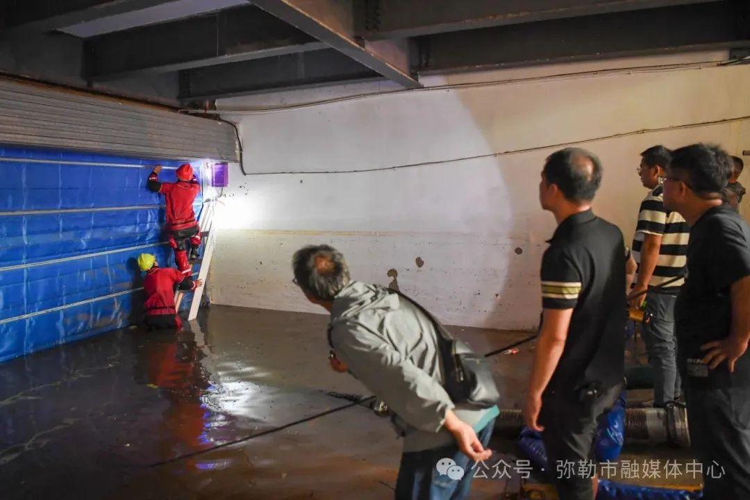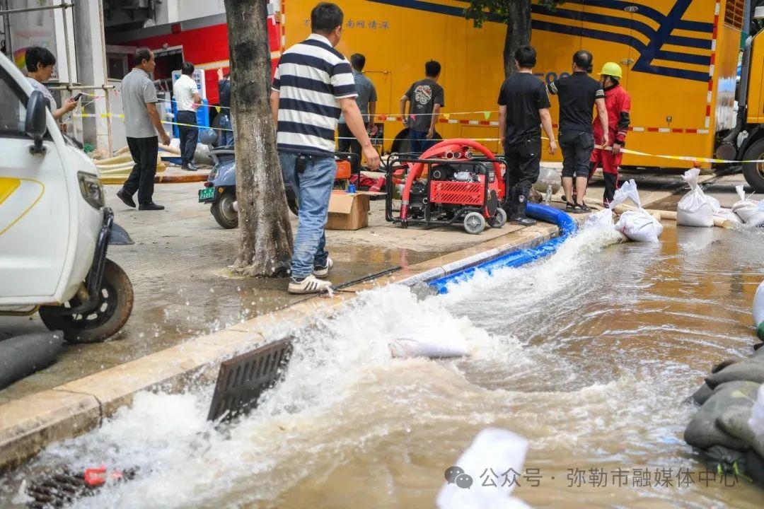 近日的强降水,导致城区部分路段出现内涝积水情况。弥勒市消防救援大队迅速出动,联合街道、社区进行排涝抢险工作。