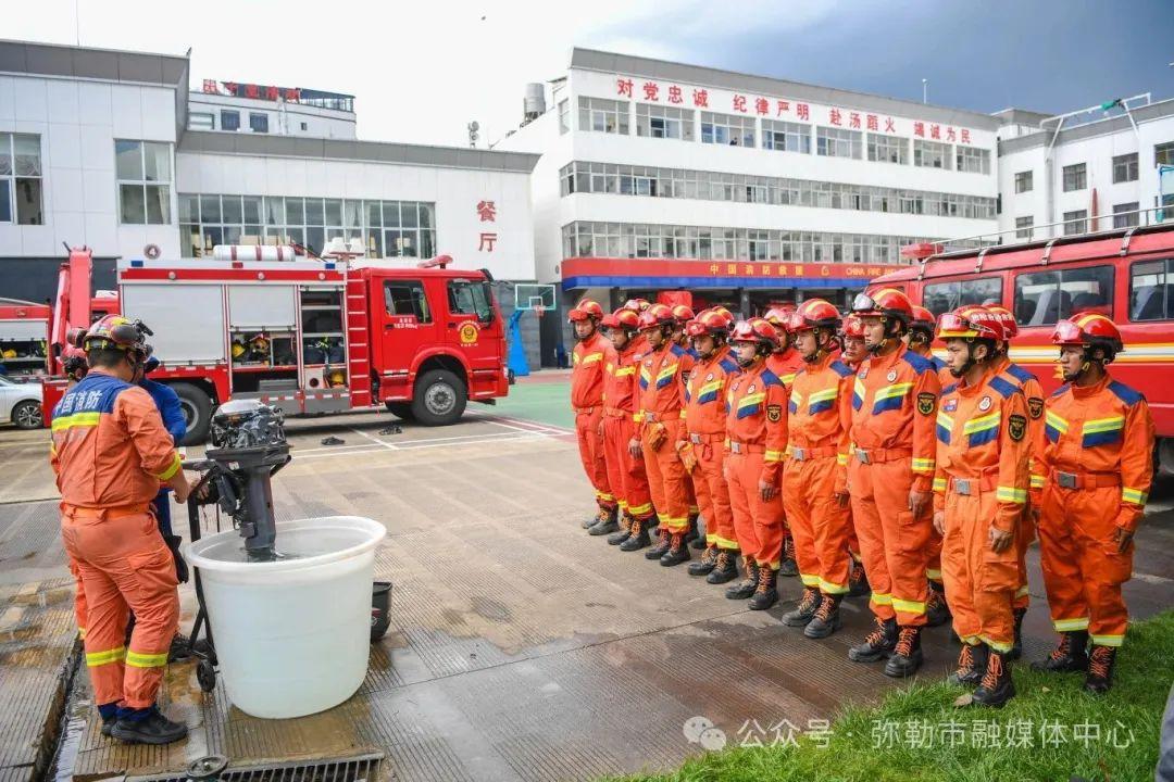 面对汛情,弥勒市消防救援大队始终严阵以待,强化预警响应,严格执行“1262”精细化预报响应联动机制,及时与气象、应急等部门会商研判,动态掌握雨情汛情,精准调配力量,确保快速高效救援。