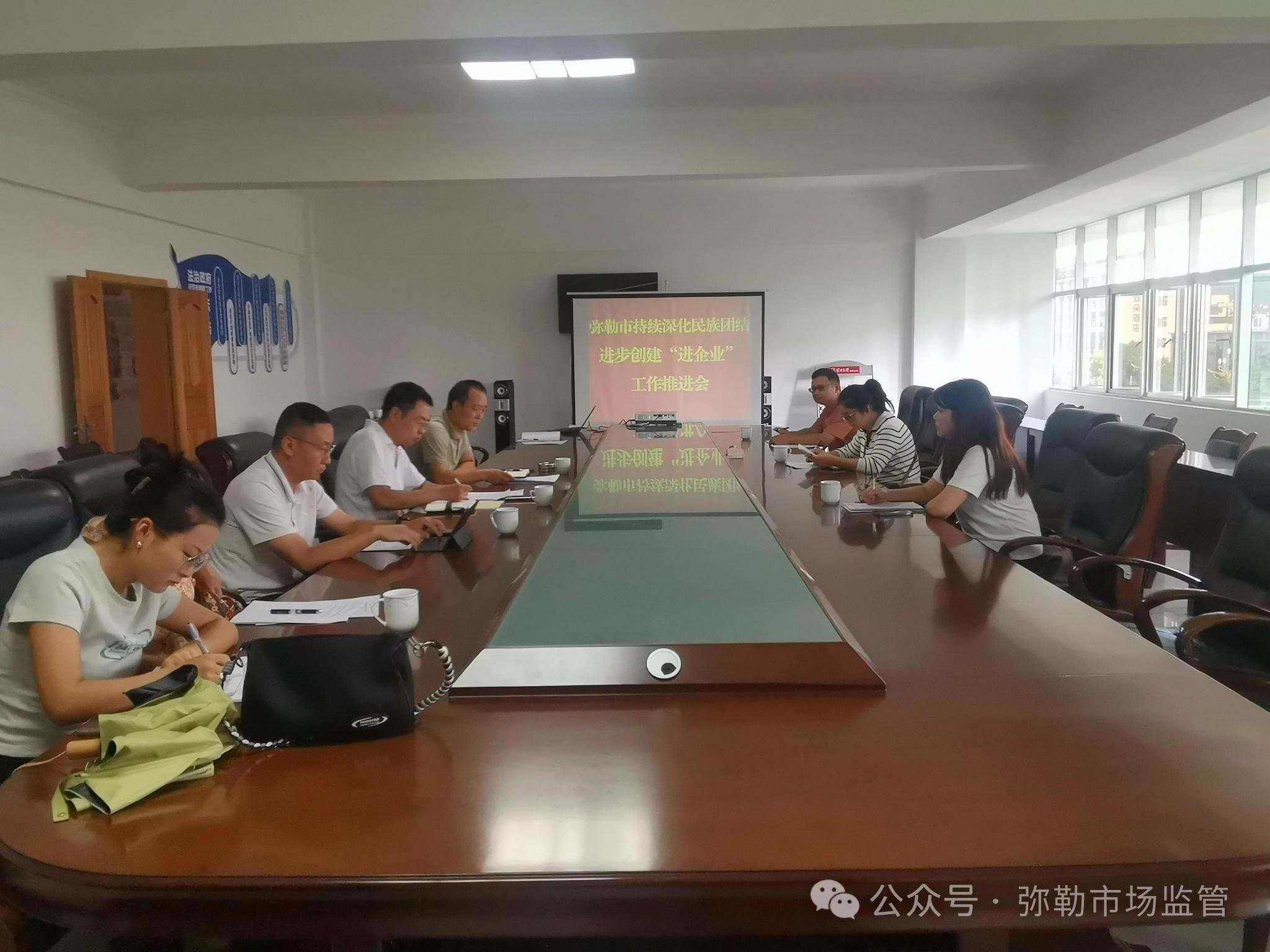 为推进民族团结进步创建示范“进企业”工作顺利开展,8月16日,市市场监管局协同市民宗局联合召集市发改局、市工信局、市科技局等相关单位分管领导及工作人员11人,召开弥勒市持续深化民族团结进步创建“进企业”工作推进会。会议传达学习了习近平总书记关于加强和改进民族工作的重要思想、对云南提出“三个定位”和“三边三好”重要指示精神和对《全国民族团结进步示范企业测评指标》要求;各与会单位分别汇报持续深化民族团结进步创建“进企业”工作情况;并对开展民族团结进步创建示范“进企业”工作的重要意义及工作要求做强调,从意识及队伍上为创建工作做出有力保障,确保推进创建工作常态化进行。