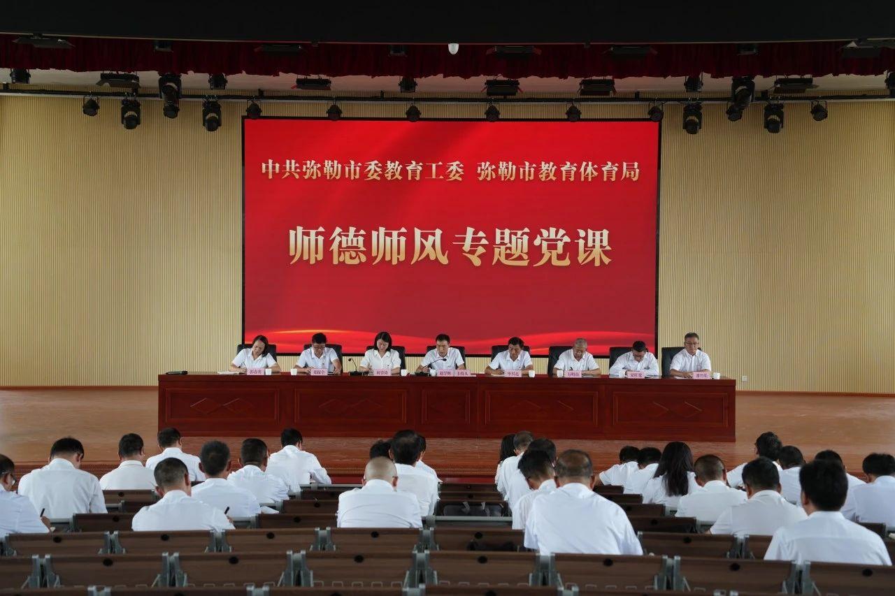 三是强化日常警示教育。将《中国共产党纪律处分条例》《新时代中小学教师职业行为十项准则》《新时代幼儿园教师职业行为十项准则》《事业单位工作人员处分规定》等纳入“三会一课”、教职工会议必学内容,常态化开展警示教育。召开弥勒市教体系统警示教育会1次,观看警示教育片4次,开展集体廉政谈话3次。书记讲授纪律党课178场次。到红廉文化主题教育馆、张冲故居、朱家璧纪念馆等教育基地开展警示教育主题活动40余场1800人次。