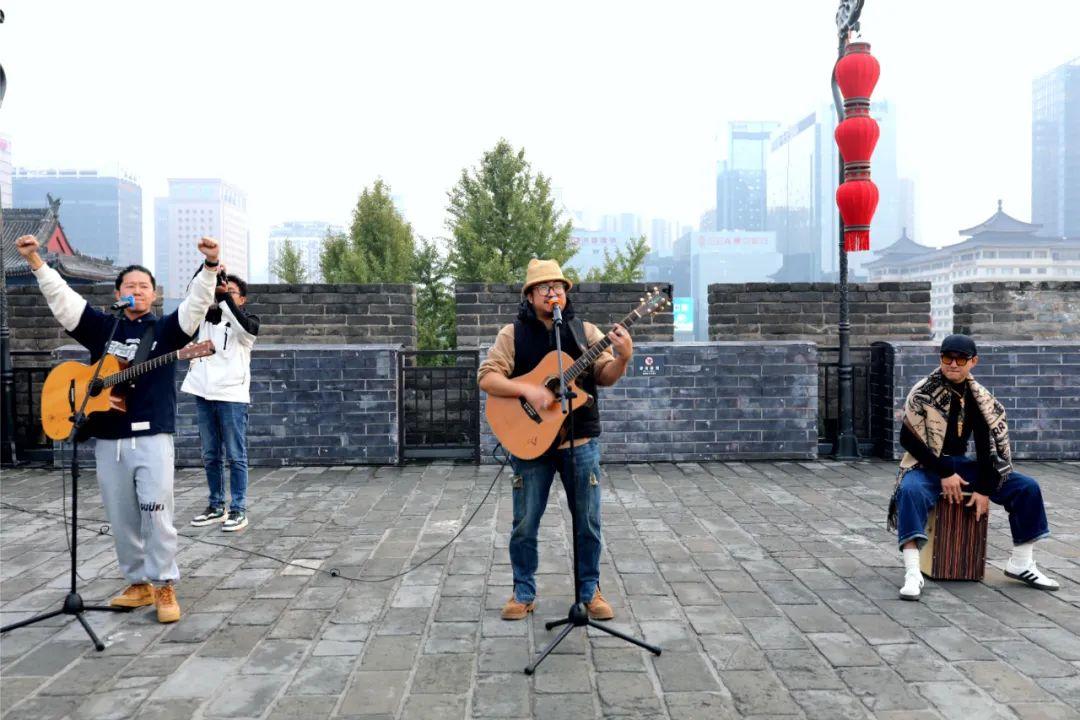 这支来自弥勒的乐队以其深情的歌声和独特的音乐风格,将弥勒的山水之美、人文之韵融入旋律之中,让西安市民及游客仿佛置身于那片神秘而美丽的土地之上。原创曲目《阿细跳起舞》更是将现场氛围推向了高潮,赢得了阵阵掌声。