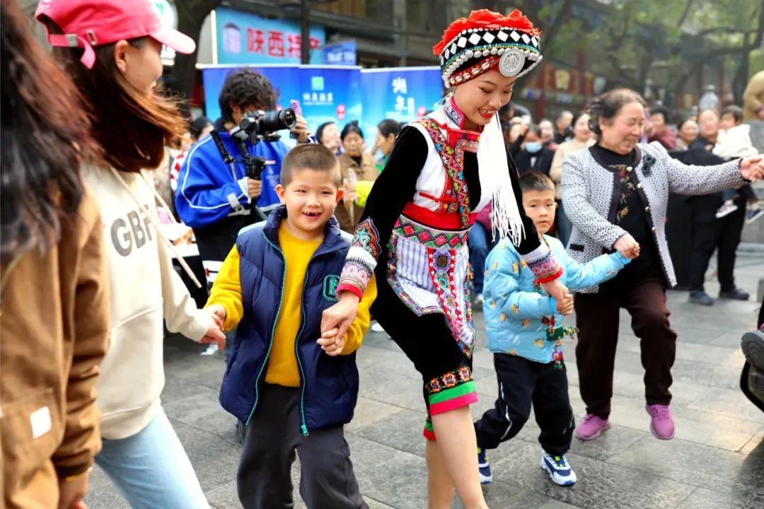 在舞者们的带领下,不少市民和游客纷纷加入,一同体验“弥迪”(弥勒方言,意为欢乐舞蹈)的乐趣。整个北院门历史文化风情街瞬间变成了一片欢乐的海洋,本次弥勒文旅的推介活动在此达到了顶峰。