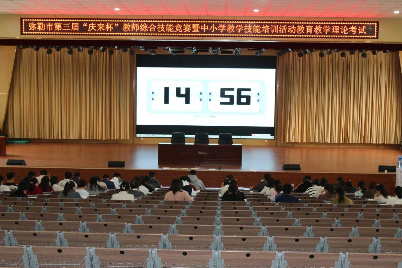 2024年11月11日,弥勒市第三届“庆来杯”教师综合技能竞赛暨中小学教学技能培训活动如期举行。当日下午,参加教师综合技能竞赛的112名教师在西山民族中学进行教育教学理论考试。