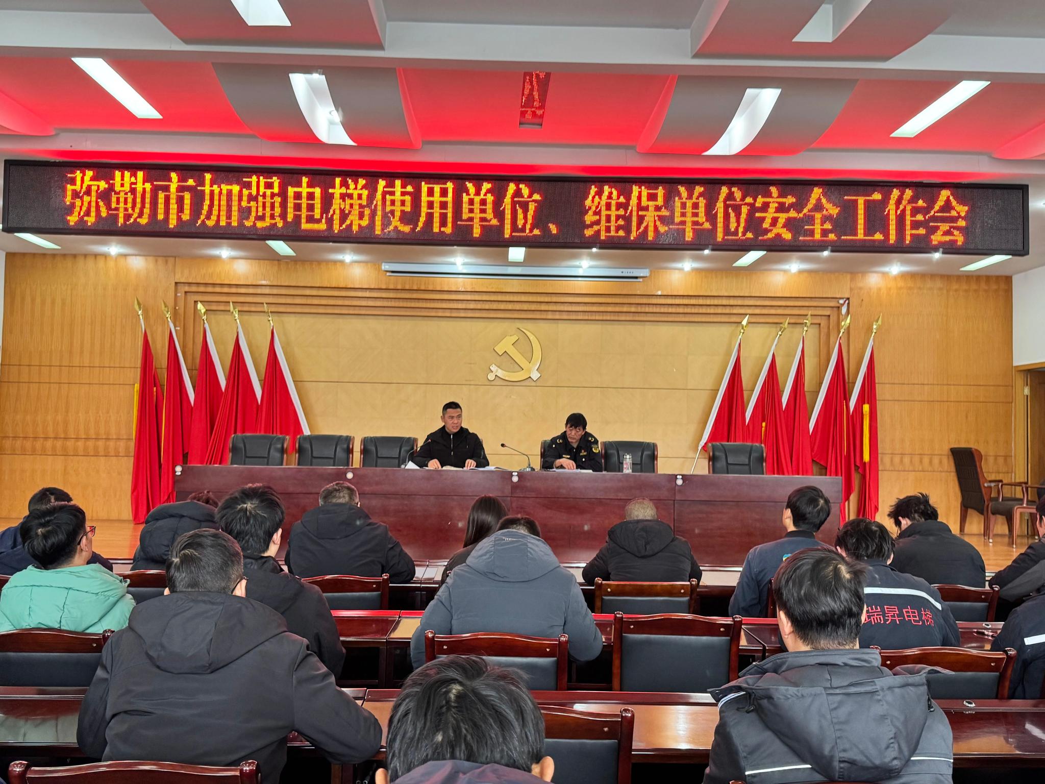 双节将至,寒潮来袭,为切实保障岁末年初特种设备安全平稳运行,维护人民群众生命财产安全,近日,弥勒市市场监督管理局特种设备安全监察科组织召开电梯安全警示教育会,全市各电梯维保单位、物业单位参会。