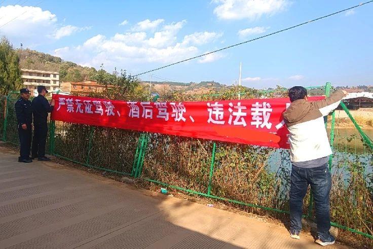 民警对辖区乡村道路开展隐患排查,在隐患点安装警示柱,在重点时段、重点路段开展路检路查,重点整治面包车超员、三轮农用车违法载人、无牌无证、酒驾醉驾等违法行为。错开农事活动时间集中开展“美丽乡村行”交通安全宣讲,在田间地头悬挂横幅布标、粘贴海报,营造宣传氛围。