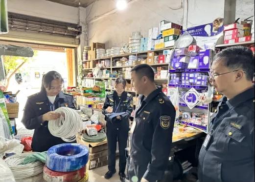 迅速出动,全面排查整治。严查电线电缆质量。此次专项行动以五金门店、电器商行等为重点检查场所,围绕以下内容开展全面排查:查资质。重点检查经营主体资质是否齐全,登记地址、经营范围与实际是否一致、经营产品是否标注厂名厂址、生产许可证编号及国家强制性产品认证(3C认证)标识。验质量。核查产品合格证明、检验报告及进货票据,严查以次充好、伪造冒用认证标志等违法行为。究溯源。对销售来源不明、无合法进货渠道的电线电缆产品进行重点排查,严防不合格产品流入市场。