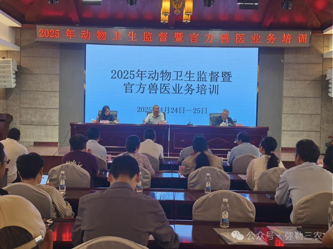 为提升全市官方兽医依法履职能力和水平。近日,弥勒市农业农村局举办2025年动物卫生监督暨官方兽医业务培训班,全市官方兽医、协检人员共80余人参加培训。