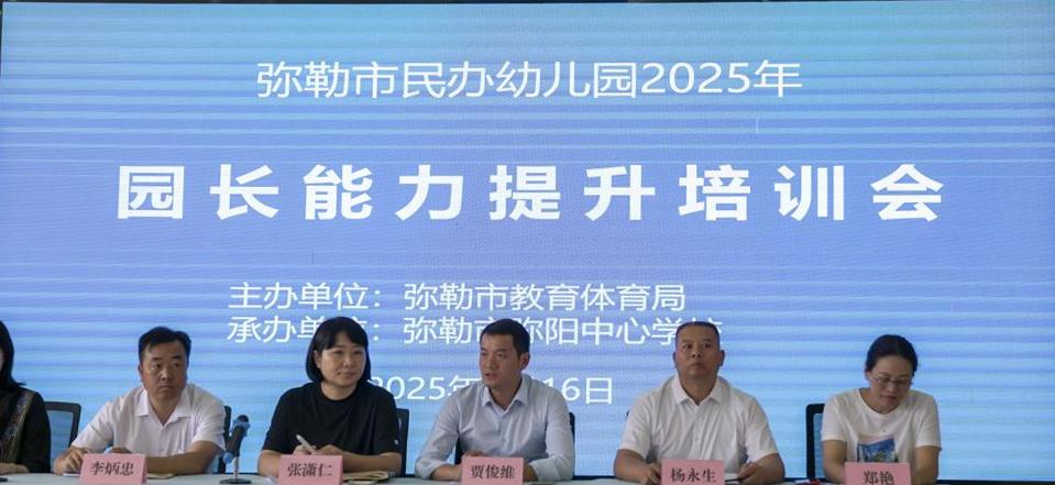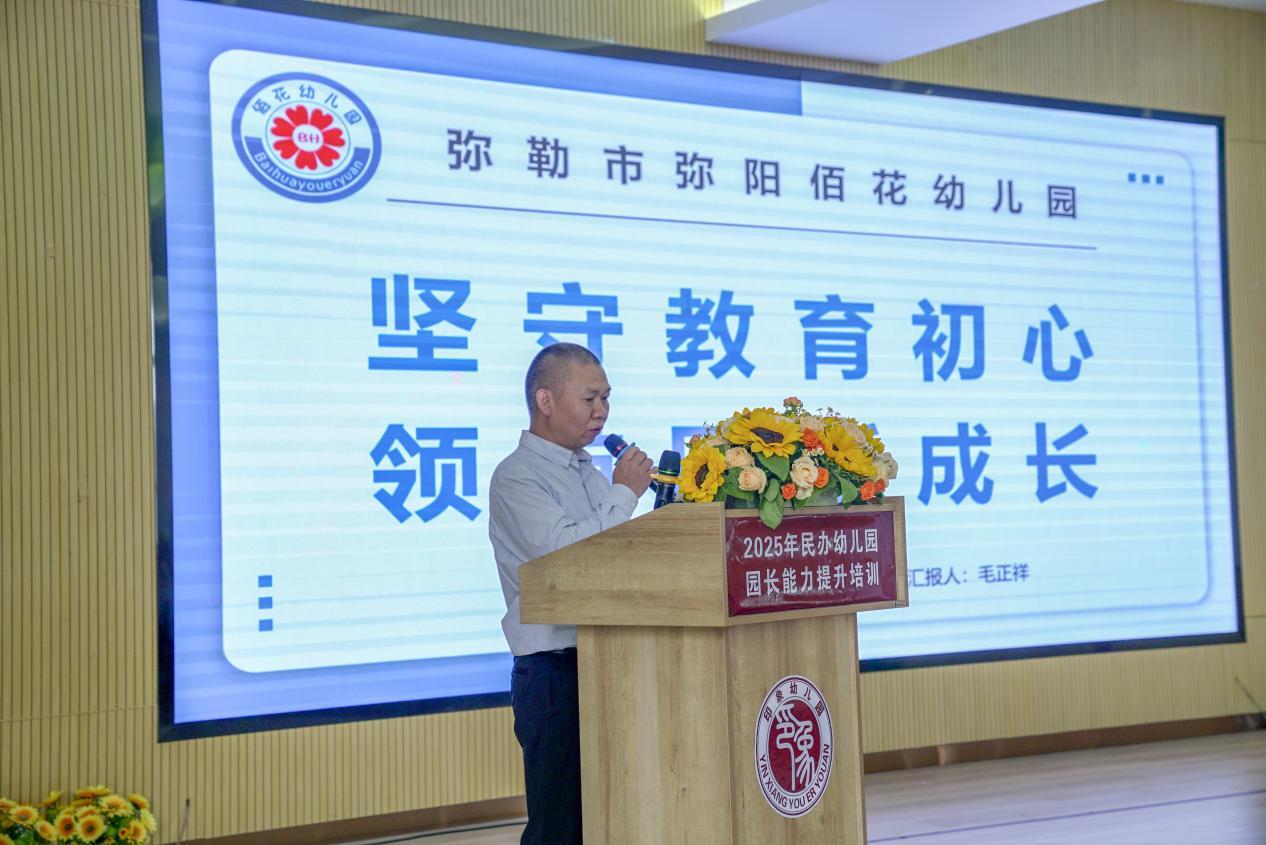 近日,由弥勒市教育体育局主办、弥阳中心校承办的“2025年全市民办幼儿园园长能力提升培训”在弥阳印象幼儿园礼堂隆重举行。