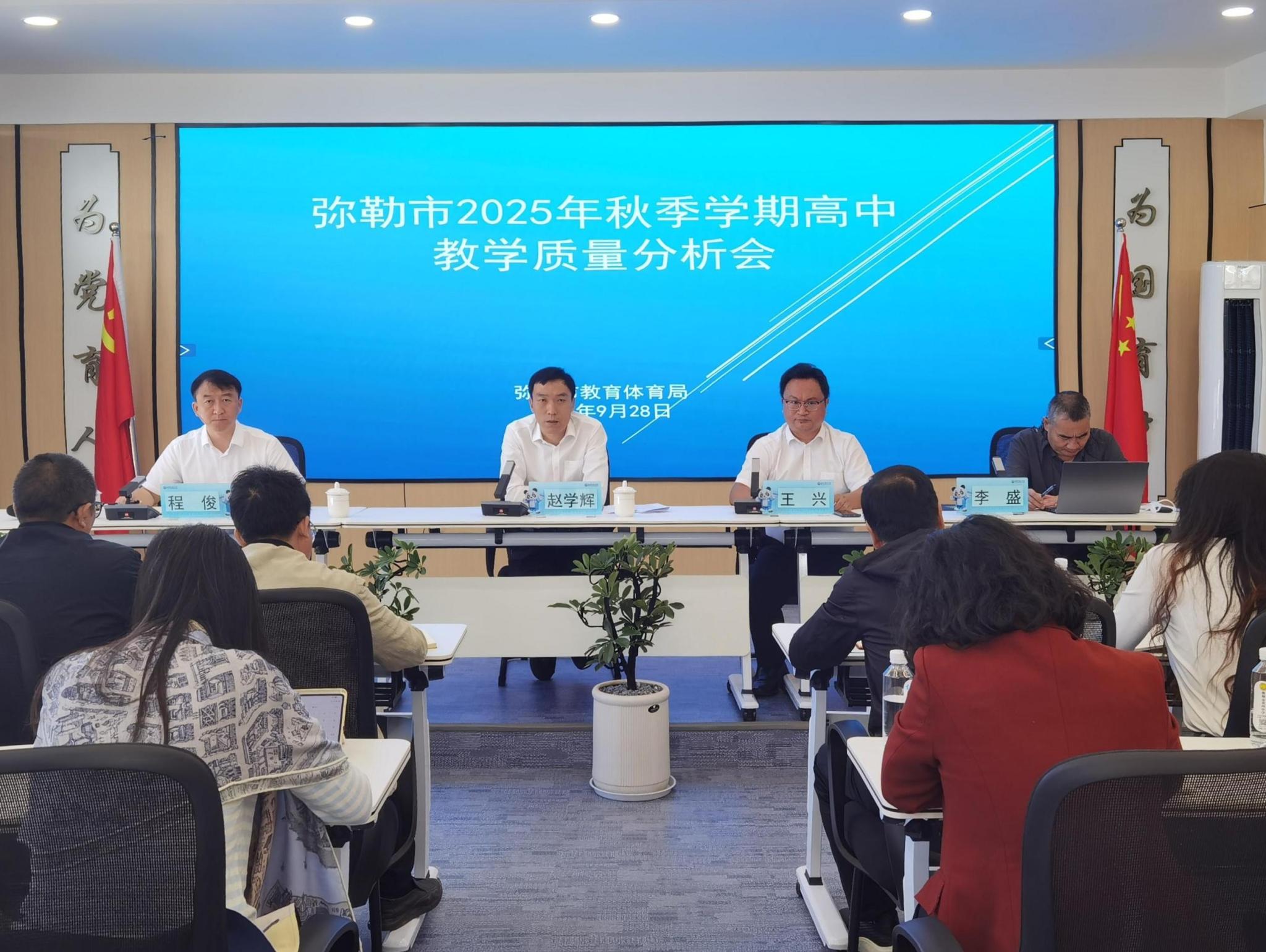 9月28日上午,弥勒市教育体育局召开2025年秋季学期高中教学质量分析会。全市各高中学校书记、校长,分管教学的副校长,教科室主任,高中市级学科中心教研室主任等70余人参会。市教育体育局赵学辉局长出席会议并讲话,为全市高中教育下一阶段发展锚定目标、明确路径。