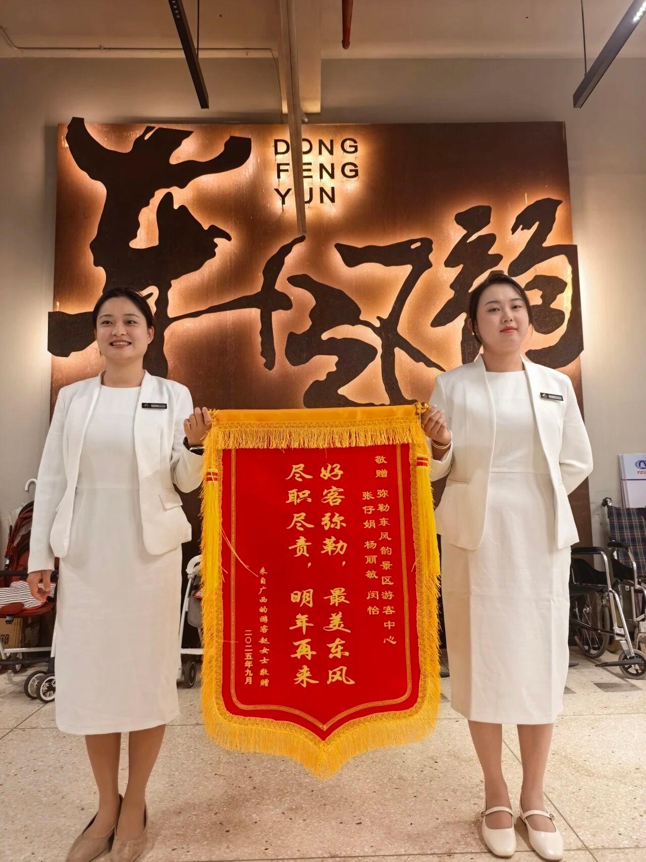 赵女士随后寄来“好客弥勒,最美东风;尽职尽责,明年再来”的锦旗,并拨打了12345市长热线提出表扬。