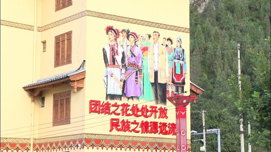 在集镇改造中,西三镇合理布局“铸牢中华民族共同体意识”宣传标语、展板、墙体文化,突出展示中国结、刺绣、阿细跳月等各民族共享的中华文化符号和中华民族形象,将代代相传的民族文化传统理念融入寻常百姓生活当中,增强民族自信,推动铸牢中华民族共同体意识深入人心。