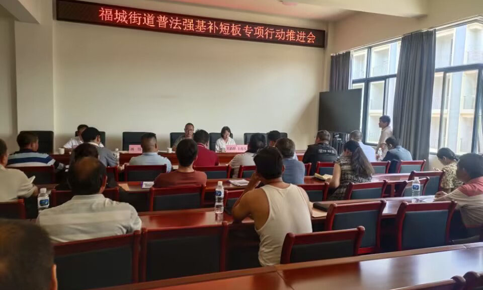 一是完善普法工作机制。结合街道实际,研究制定《福城街道2023年普法强基补短板专项行动实施方案》,组织召开普法强基补短板专项行动部署会、调度会、推进会共计10余场,明确普法强基补短板专项行动“任务书”和“施工图”,全力推动各项工作落地见效。二是完善普法培训机制。对街道、村(社区)、组三级干部、网格员、“法律明白人”等开展普法专题培训共3期230余人,进一步提升法治宣传的能力和水平。三是完善公共法律服务体系。建立“一村一警”“一村一调解队”“一村一法律顾问”3支基层法治队伍,完善“互联网+法律服务”工作机制,开展便捷法治宣传,提升普法质效。
