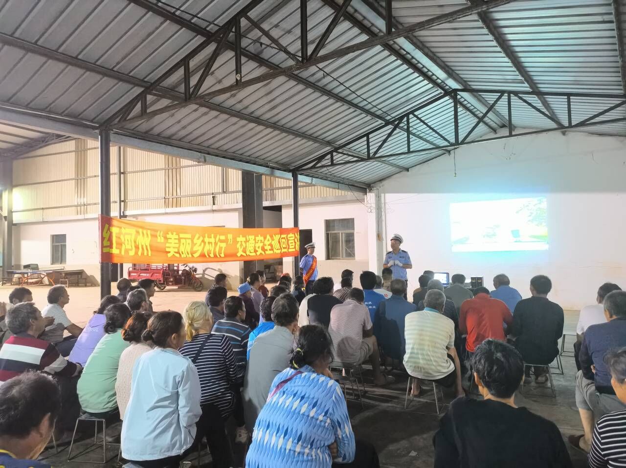 活动中,弥勒市交警大队民警针对村民日常出行特点和部分驾驶员交通安全法律意识淡薄的现象,用通俗易懂的田坎语言与村民“面对面”科普交通安全知识。通过群众身边的典型事故案例,重点讲解了无证、酒驾醉驾、超员、农用车及三轮车违法载人等交通违法行为带来的严重后果,并就常见的交通违法行为开展普法宣传,同时提醒广大农村交通参与者要自觉遵守交通安全法律法规,加强自我安全防范意识,做到安全文明出行。