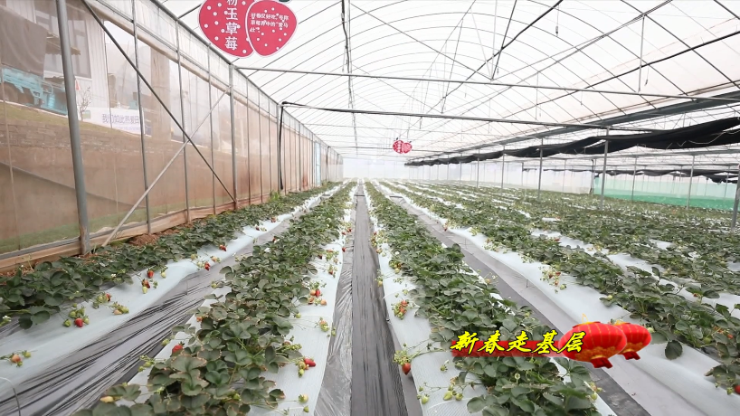 走进雨普村草莓农场的温室大棚,一垄垄草莓苗生机勃勃,翠绿之中掩映着一颗颗红艳鲜嫩的草莓,空气中弥漫着清甜的味道。