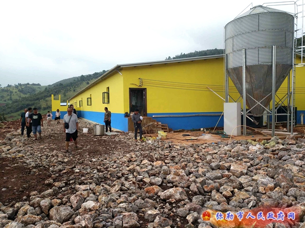 该项目建设内容为新建欧式自动化猪舍一座、管理房、堆粪坪、800m3水池1件、200m³水池1件、进场砂石道路2公里、配套电力设施、场地平整、饲料、药品及水费等,项目概算总投资321.75万元。该项目自2017年11月开工以来,进展顺利,目前,猪场主体已完工,墙体粉刷好,机械设备安装完毕,水池已建好,饮料塔和管理房已建成,现已从温氏公司引进猪仔1500头,每批养殖生猪1500头,年出栏3000头,生猪出栏后可实现经济效益60余万元,每户建档立卡户可获得1000元收入,加快贫困户脱贫致富步伐。