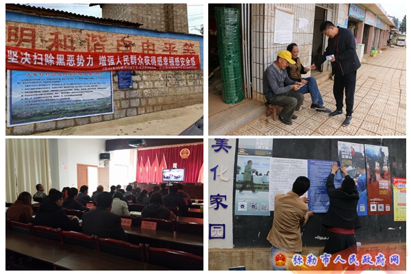 三是加强基层治理,工作落到实处。将扫黑除恶专项斗争宣传工作延伸至村委会、村小组,把扫黑除恶纳入“村两委”考核责任目标中,使社会秩序更加规范,社会风气更加良好,不断增强人民群众的获得感、幸福感、安全感。