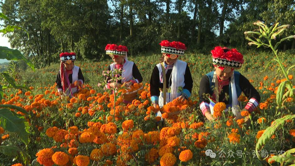 精准定位,优化“烟+”产业组合。矣维村委会下辖13个村民小组,有农户1145户,人口4345人,群众主要收入以种植烤烟、玉米、蔬菜和中药材为主。村域内森林覆盖率高,耕地面积少,人均耕地仅0.16亩,全镇末位排名第一。前几年,为提高土地利用率,增加家庭收入,群众采取“烟+菜”的轮作模式,于烤烟收烤结束后种植豌豆、西葫芦等蔬菜作物。但蔬菜市场价格浮动较大,又值秋冬交替少雨时节,经常出现投资成本高、经济回报低的现状。为有效解决全村耕地紧张现状,降低群众投资风险,提高农民收入,矣维村经过多产考量、多方论证、多群体征求意见,选定药用价值高、花期长、收益见效快、市场价格稳定,且在镇域内已具规模化的中药材万寿菊作为“烟+”组合产业。