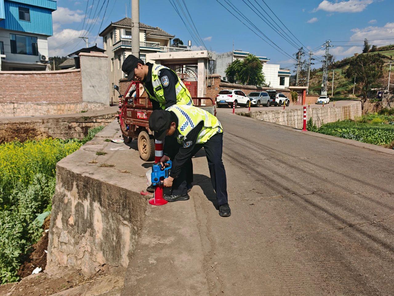 2025年2月11日,弥勒市公安局太平派出所组织民警到太平街道禄松线新桥村路段开展道路风险隐患排治工作,采取安装警示柱提示,低成本措施防范风险,加强农村地区道路交通事故预防。