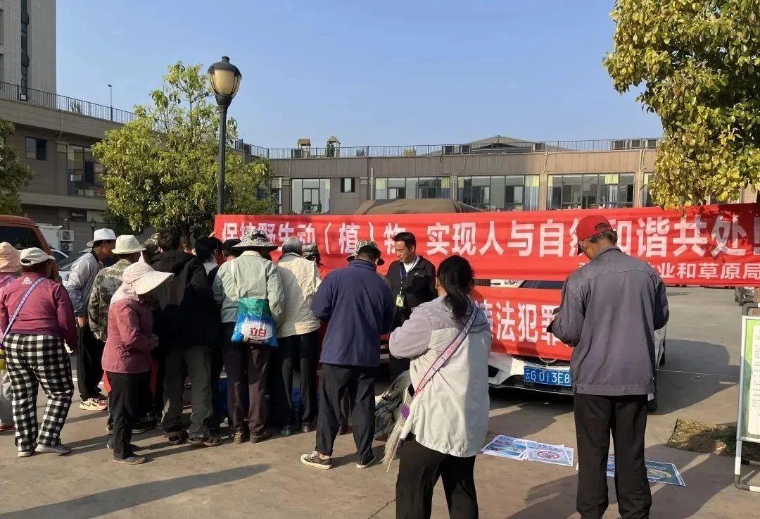 街道借助线上线下双渠道,开展了形式多样的宣传活动,让野生动物保护意识深入人心。线上通过QQ群、微信群、公众号、视频号等渠道,结合典型案例开展警示教育,广泛宣传野生动物保护的法律法规政策以及保护野生动物对生态环境的重要意义。线下以“世界野生动植物日”“世界湿地日”等特殊节点为契机,在街道、社区、学校、花鸟市场、公园、零工市场等人员聚集地,集中开展主题宣传活动,通过悬挂横幅、设置科普展板、发放宣传手册等方式向群众普及保护野生动物的知识和相关法律法规,提升公众对生物多样性保护的认知度。目前,通过线上渠道转载发布野生动物知识和相关法律法规2000余条,线下发放宣传手册1000余份。