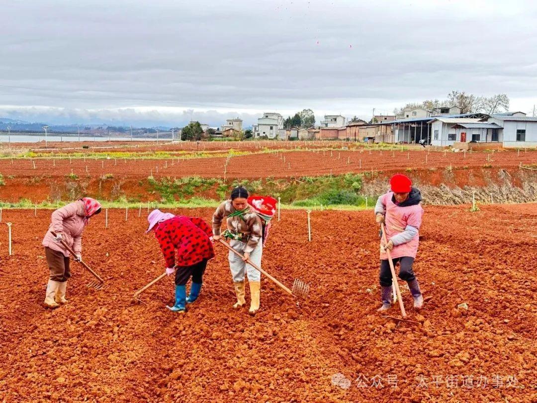 靠前落实,解决“谁来耕作”问题。构建“街道+村委会+小组”三级联动机制,形成齐抓共管格局。共同推进宣传动员、摸底排查等工作,并结合各村(社)土地种植面积和亩产效益,统筹布局、科学规划,细化大豆玉米带状复合种植任务,逐级逐项分解到村、到户、到地块,农科部门全程常态化跟踪翻地、播种进度,及时掌握情况并解决问题,确保大豆玉米带状复合种植模式顺利推广。2025年太平街道完成大豆玉米带状复合种植2484亩,目标任务完成率达100%,与2024年1650亩同比增长50.55%,自2023年弥勒市推广大豆玉米带状复合种植示范以来,连续三年太平街道种植面积均为全市第一。