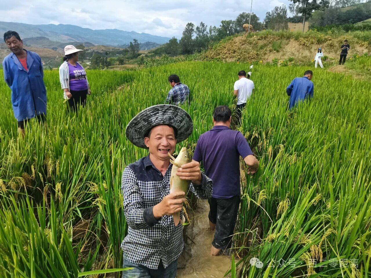 依托高山清澈无污染的优质水源和常年凉爽气温的气候特点,在大冲村委会岩子寨小组打造的50余亩稻花鱼养殖基地,积极探索“稻鱼共生”发展模式,稻田不施化肥、少打农药,鱼儿吃掉害虫和杂草,鱼的粪便又成了水稻的天然肥料,稻养鱼、鱼肥稻,逐渐形成“一水两用、一田双收”的良好生态循环,实现了生态和绿色可持续发展新格局。十月的西二,是被“丰收色”填满的季节,十月初的热闹在“鱼”,中下旬的忙碌便全在“稻”上。月初,田埂边的鱼篓盛满鲜活的生态鱼,稻花鱼在国庆节期间纷纷上市,为国庆献礼,而中下旬,稻田褪去翠绿、换上金黄,缺水的田垄里,收割、晾晒、灌谷的声响此起彼伏,每一个忙碌的场景,都是西二人写给秋天的“丰收诗篇”。