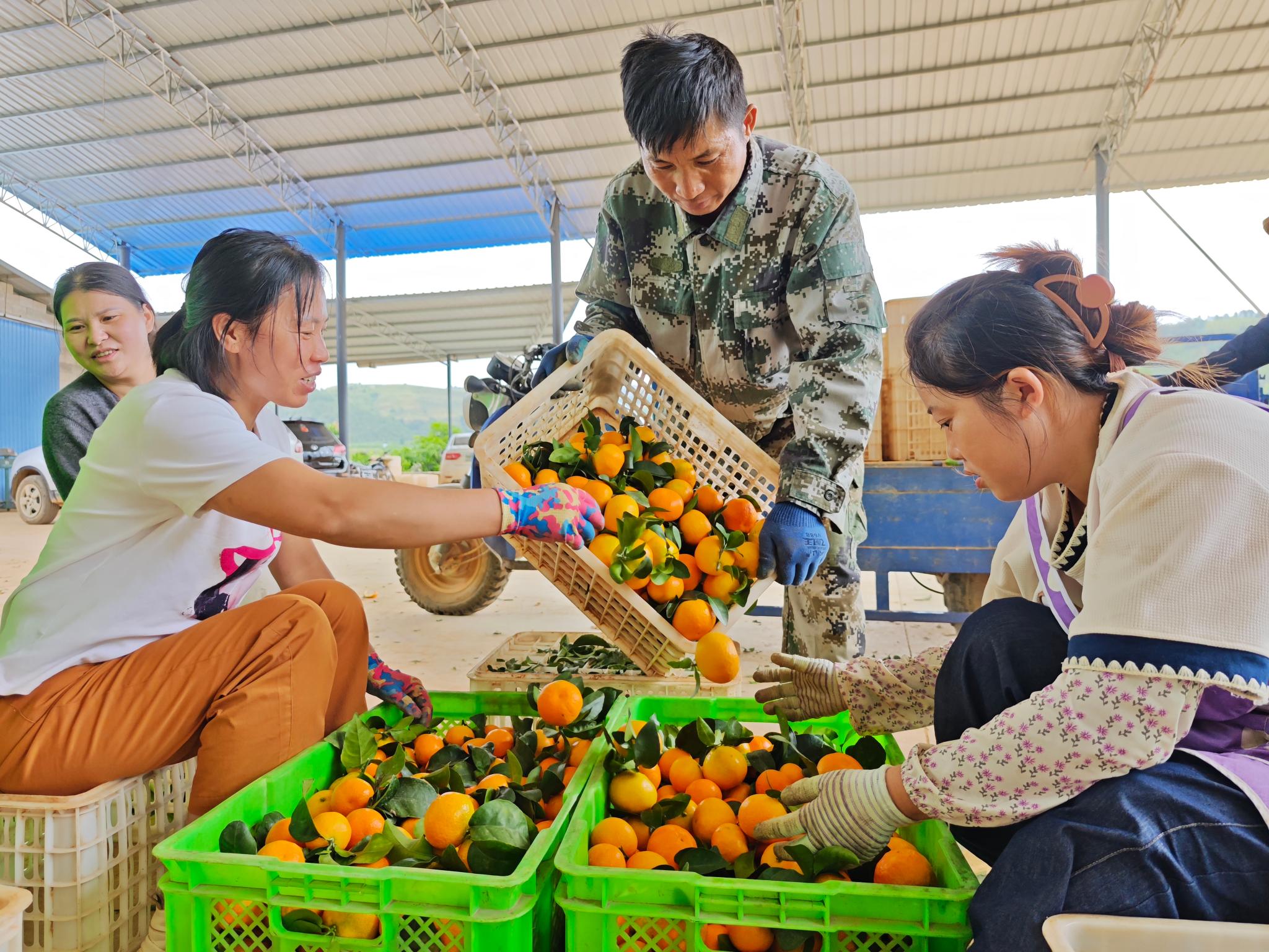 金秋送爽,橘果飘香。近日,随着丰收季的到来,弥勒市江边乡砂糖橘已正式进入成熟采摘期,一个个金黄饱满的果实挂满枝头,空气中弥漫着沁人心脾的果香。果农们正忙碌地进行采摘、分拣、背运、装箱,脸上洋溢着丰收的喜悦。