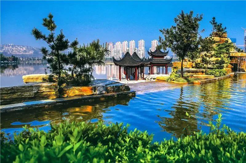 说到水乡,总会想到江南小桥、流水、烟雨、小巷穿着旗袍撑着油纸伞的姑娘水乡总让人有一种温柔的感觉让人忍不住向往,江南离我们很远但在弥勒,有一个地方不是江南,恰似江南有江南的韵味又有江南没有的情调它就是——红河水乡,作为弥勒标志性文旅项目之一红河水乡以水为载体将中国古代建筑文化与水乡美景充分融合打造出一幅悠然的江南画卷,红河水乡还是集山水游憩、非遗体验、度假酒店、文化展示、滨水休闲等业态为一体的城市旅游综合体,红河水乡离弥勒市中心不远与湖泉生态园遥相呼应红河水乡所体现的民俗文化尤以出自弥勒响彻大江南北晚清时期赫赫有名的“钱王”王炽文化最突出,雄伟壮丽的“钱王门”载物停靠的钱王码头精心打造的王炽纪念浮雕文化墙还有钱王宫、钱王楼、红顶亭等处处彰显着“钱王”王炽的传奇人生和水乡中浓厚的“钱王”文化,小镇有着不输江南的诗情画意漫步小镇中微风轻柔、阳光温暖街巷两旁的商铺和民居门前当地居民坐在谈笑风生、闲话家常将弥勒式慢生活展现得淋漓尽致,人们行走于青石板路上流连于每一条小巷、幽弄之间感受水乡的静谧与古朴生机勃勃的花草古朴的建筑、优雅的格局将尘世的喧嚣隔绝只留一方静谧、悠然自得,小桥、流水、亭台楼阁……沿河而行一路流水潺潺流水在阳光的照射下波光粼粼似碎银,似星星几只小船停泊在岸边白墙青瓦格窗的仿古建筑倒映水中水乡的恬静美好扑面而来,傍晚时分,静坐水边微风轻抚而过侧听流水“哗啦啦”的声音夕阳的余晖柔和地洒在水面艳丽的晚霞从天空笼罩下来如同一支沾满颜料的画笔将小镇染成金黄色如诗如画、如梦如幻,待到余晖散尽,夜幕降临水岸旁的古式商铺前大红色的红灯笼一盏盏亮起来人影绰绰,水乡热闹起来依着水边的廊椅远处街道上嬉戏打闹的笑声清脆悦耳,忽远又近让人卸下一身疲惫慢下来,静静享受……