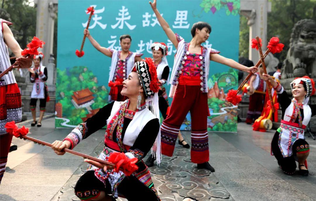 而作为国家级非物质文化遗产的彝族传统舞蹈阿细跳月,以其欢快的旋律和轻盈的步伐,让现场观众忍不住跟着节奏一起欢跳。